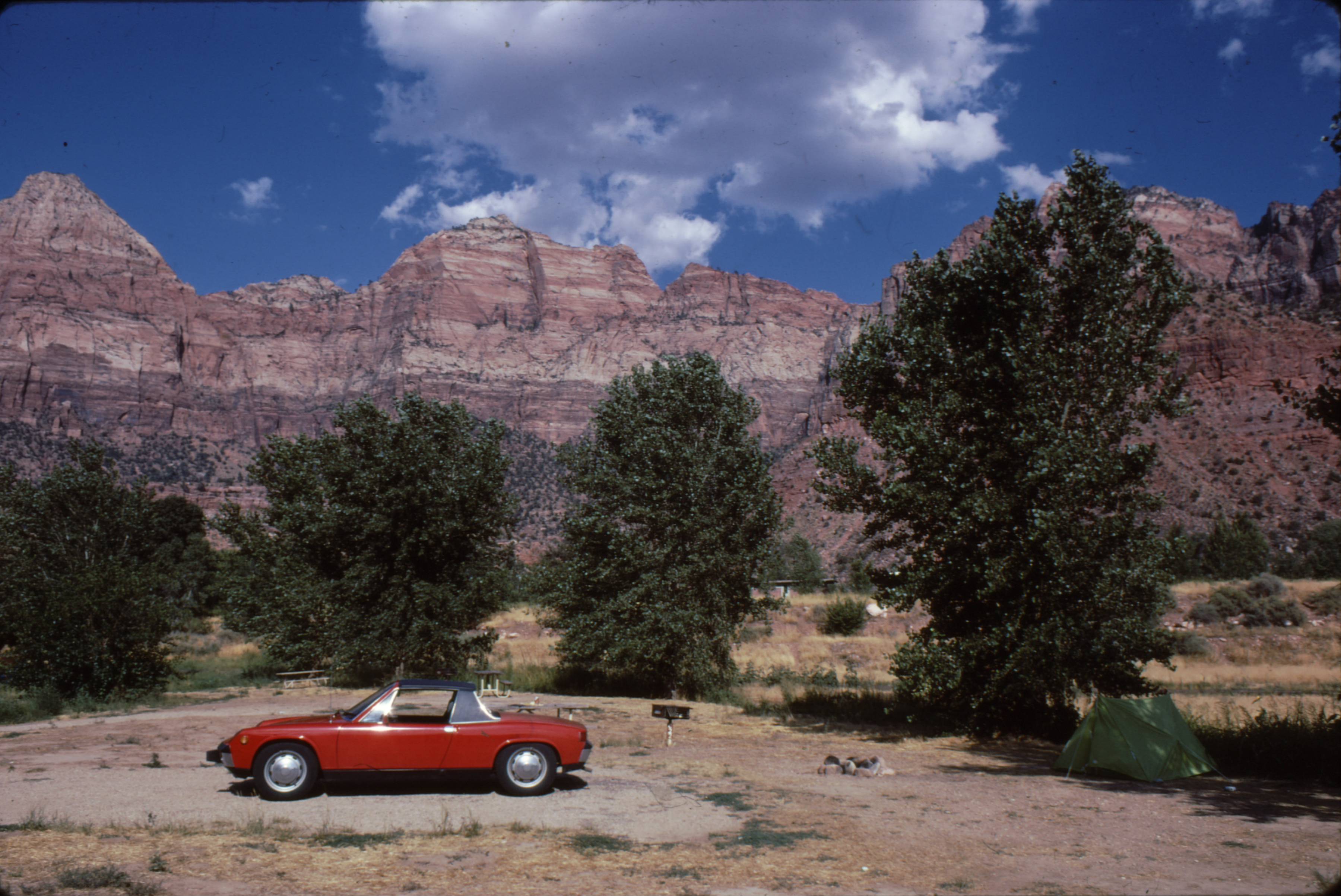 Soon after settling in to the Duxbury Public Schools job and building the first house we owned in Plympton, Massachusetts, I purchased my dream car, a 1973 Porsche 914. Anyone knowing anything about sports cars, knows that this car, with its mid-engine design, was superbly balanced and handled like a dream. Its engine was essentially a bored out and souped up air cooled Volkswagen engine, coupled with a very tight five speed manual transmission. I really enjoyed this vehicle, taking it on a trip west, visiting my Grandfather and Aunt Ada Friedly on the way, camping in Zion and Bryce National Parks and ending with visiting my parents and brothers in Denver. In its trunks (since the engine was in the middle, it had small trunks front and back) I had my suitcase, tent and camping equipment.