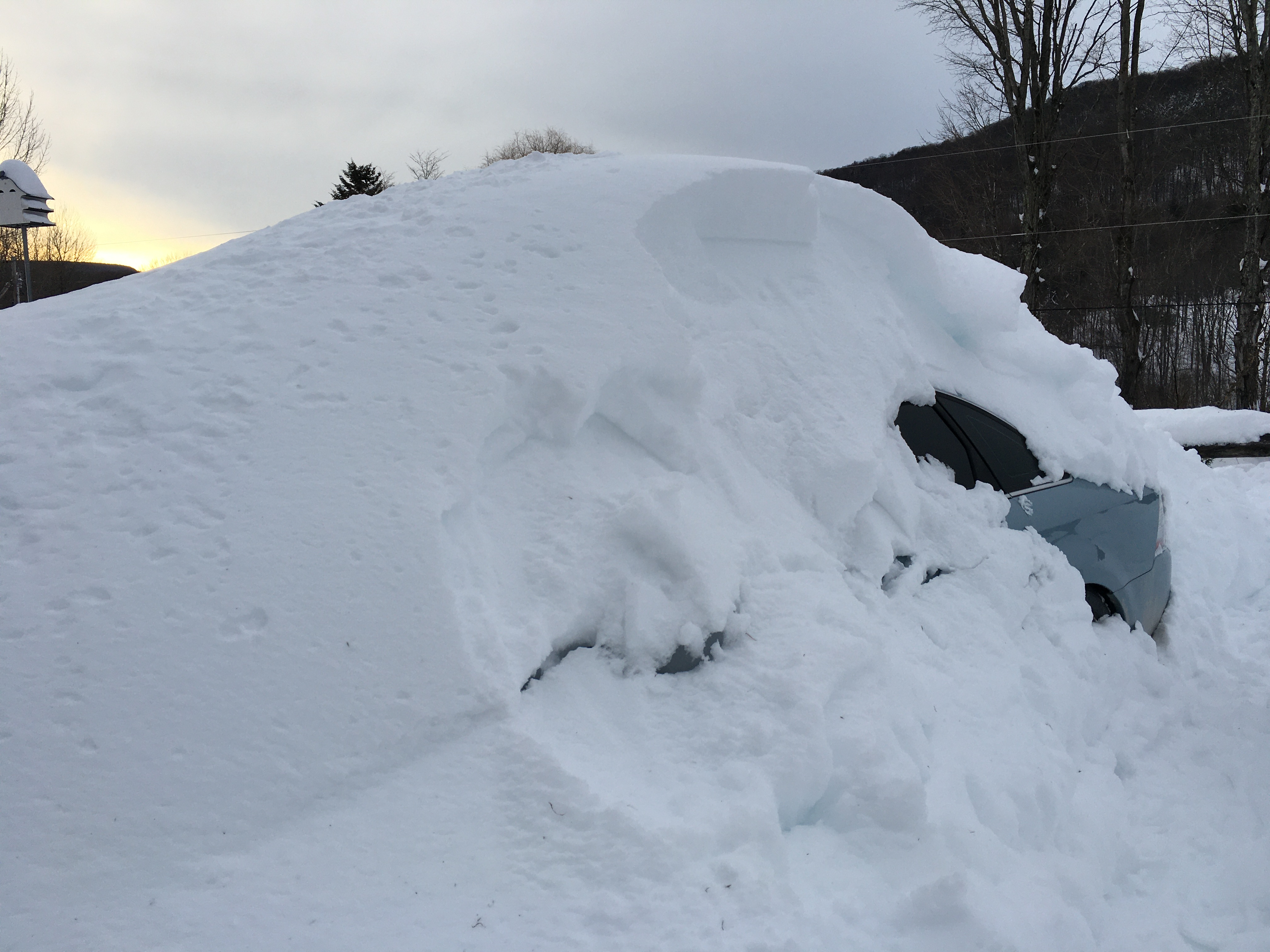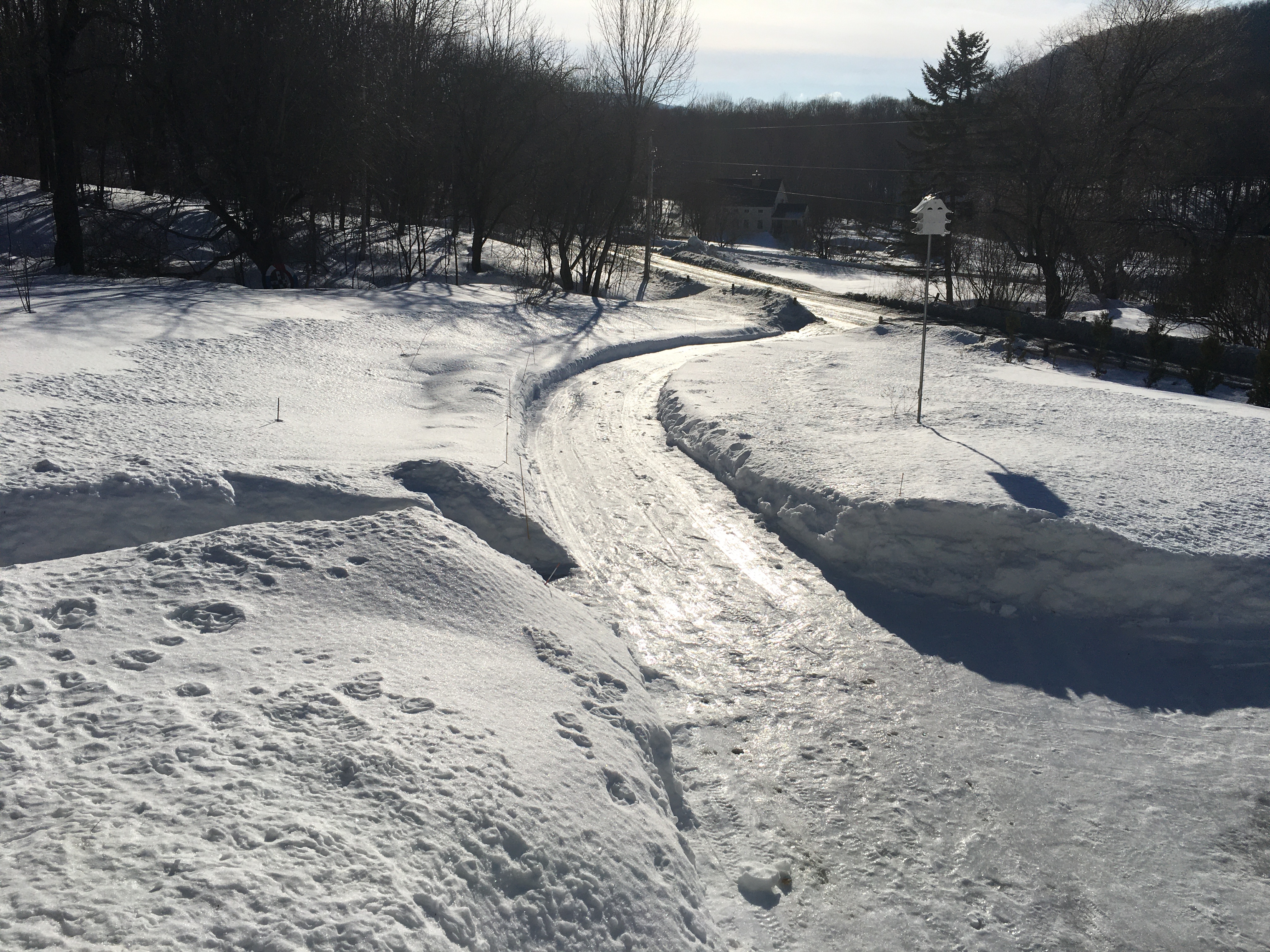 The two days of thaw ended quickly and the real Vermont winter resumed, with all of its numbing cold and continuing snowfalls, beginning with a very deep, heavy and wet snow, which became a foundation layer of frozen slush, to form the first of many snow layers since then, and burying the afore-mentioned several huge leftover piles of plowed snow full of unsightly lawn, garden and driveway detritus.