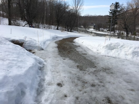 And best of all, the weather forecast for this week, March 8 – 15 contains some awfully good news – temperatures in the forties and fifties and even a little rain towards the end of the week. Finally, finally, we may see this eternal blanket of dull white snow shrink in size and depth. And finally we may see some stones peek through the ice on the walks and gravel once again appear on the driveway. Perhaps we may see some areas of brown grass emerge from the white on the lawn. And perhaps we can break out of this snowbound and icebound isolation and take a long walk.